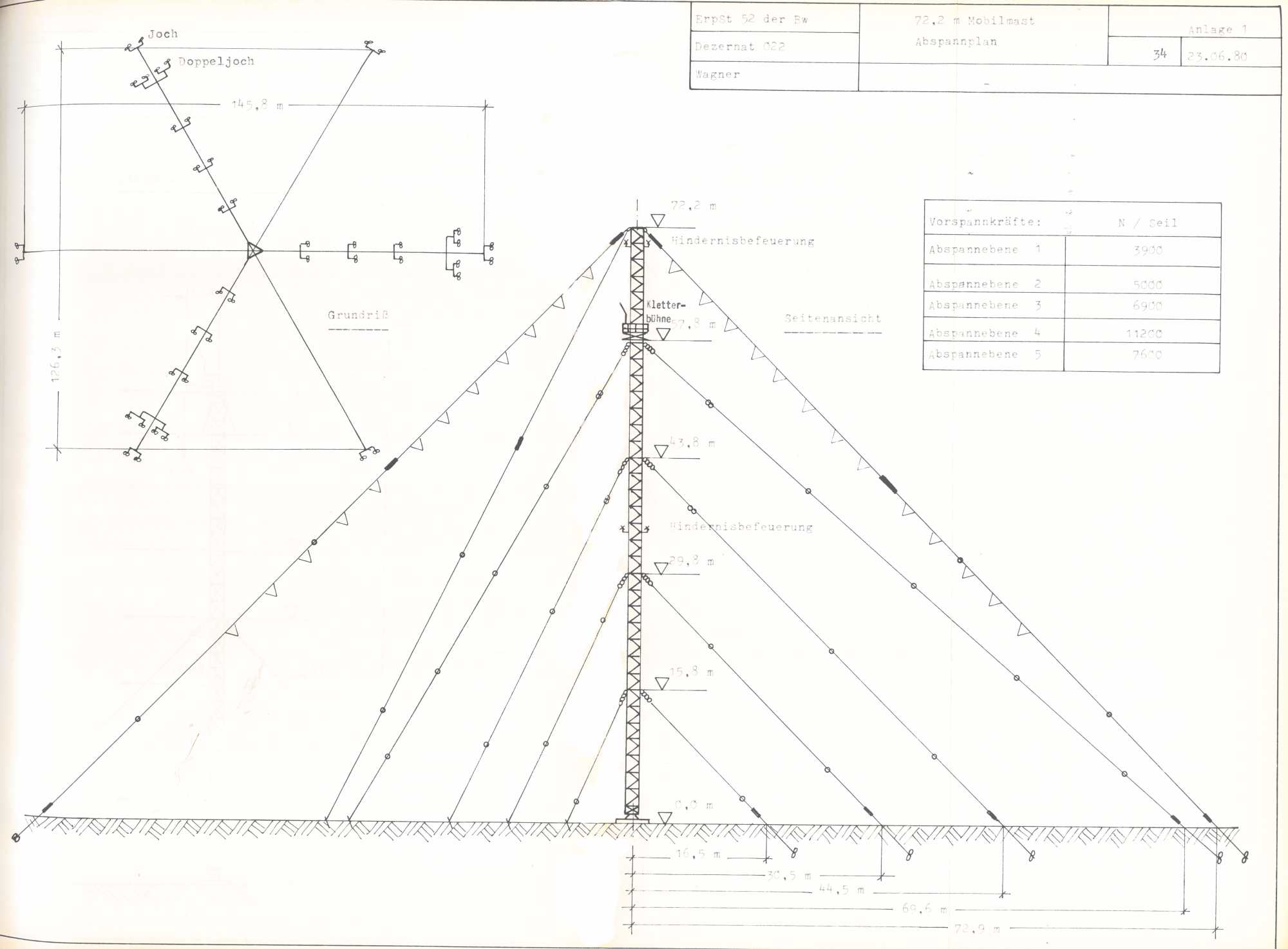 Leider liegt über die Technik, die in den Kabinen installiert war, wenig Information vor, deshalb geht es im folgenden im wesentlichen um den Aufbau des beachtlichen Sendemastes. Als Informationsquelle hierfür dienen viele Einzelbilder und ein Erprobungsbericht der Bundeswehr, vermutlich aus dem Jahr 1980.