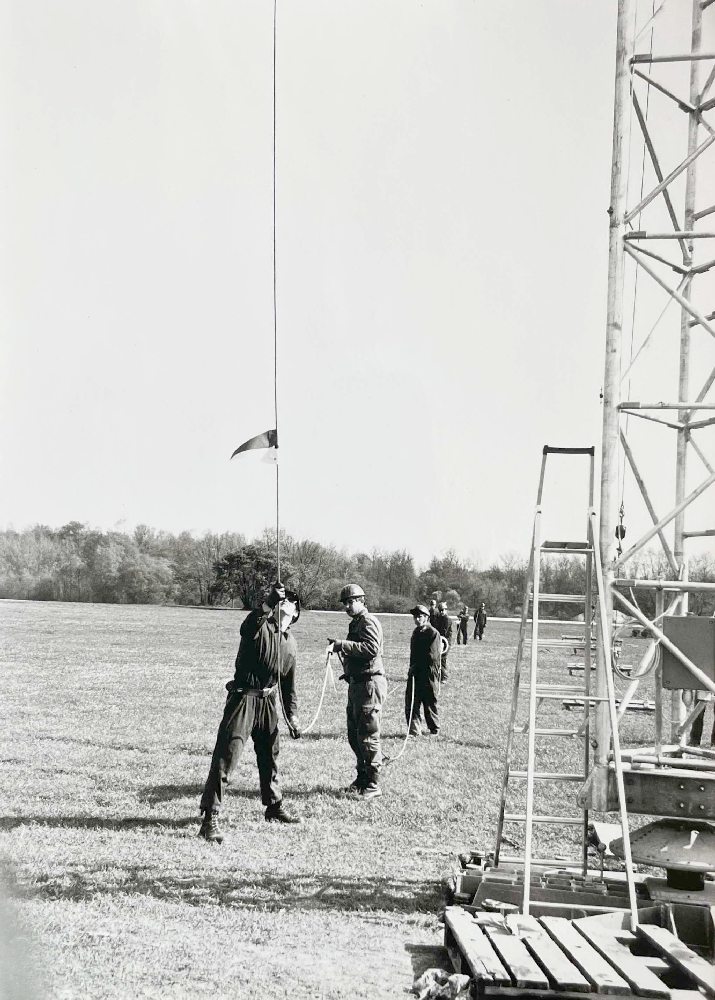 Mit fortschreitendem Aufbau des Sendemastes bewegen sich die Monteure mit ihrer Kletterbühne und dem Kran schrittweise immer weiter in die Höhe. Ein neu aufgesetzter Mastschuss liefert dabei die Grundlage zum Weiterklettern. Zur Sicherung des sich aufbauenden Mastes sind Abspannungen erforderlich. Diese werden jeweils mit montiert und sobald die Kletterbühne weiter gestiegen ist, der Mast erneut mittels Abspannungen und Bodenankern gesichert. Nach Errichtung des Mastes verbleibt die Kletterbühne in luftiger Höhe, denn die sternförmig ausgebrachten Abspannungen verhindern einen Abstieg. Die montierenden Soldaten waren dazu mit Sicherungs- und Kletterzeug ausgestattet und mussten herabklettern.