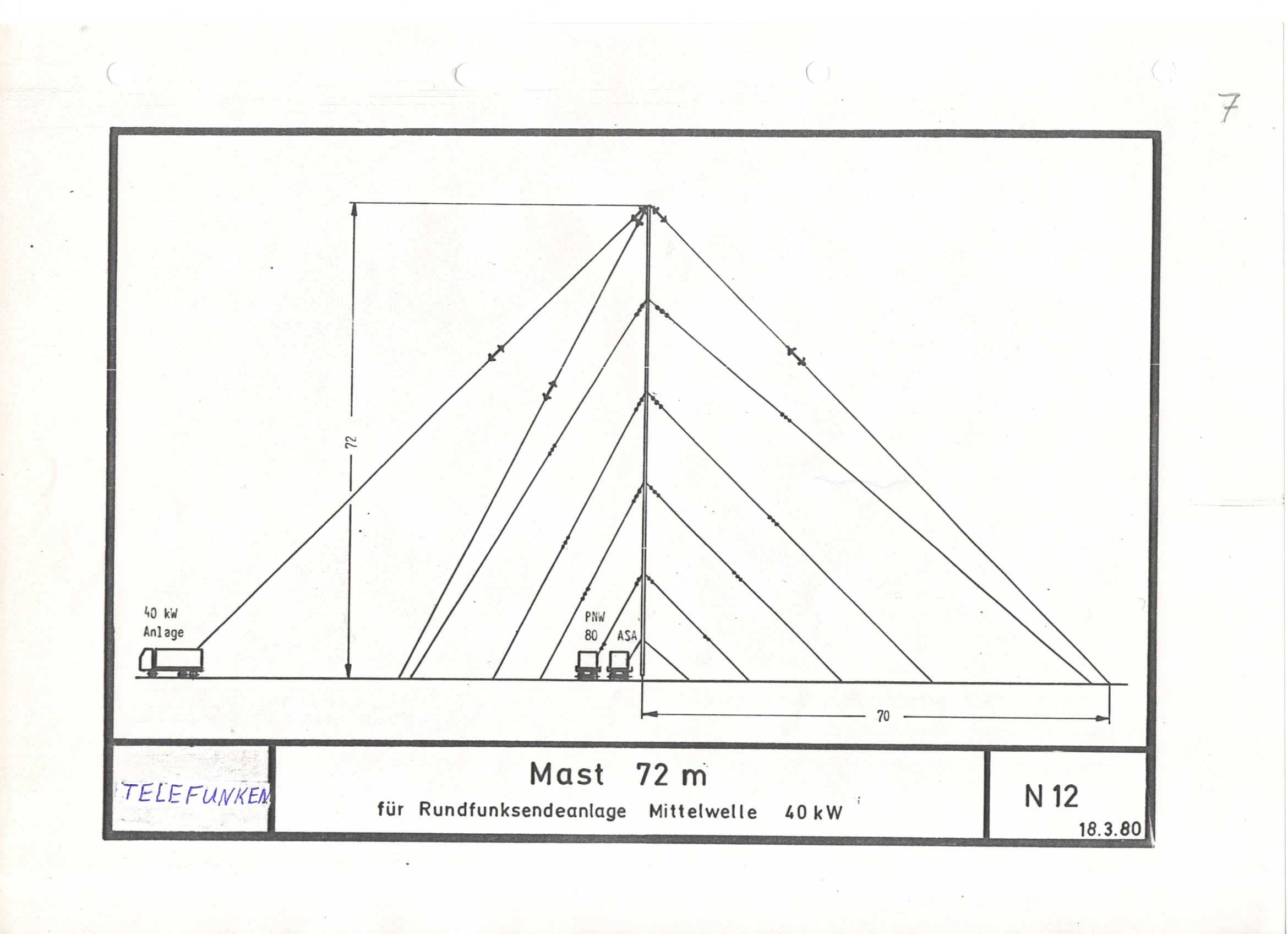 (das obige Quellenblatt aus dem Telefunken-Archiv erwähnt eine weitere Sendeanlage "1958-1960, 20kW"; hierzu liegen keine Angaben vor --> weitere Informationen wären sehr willkommen!)