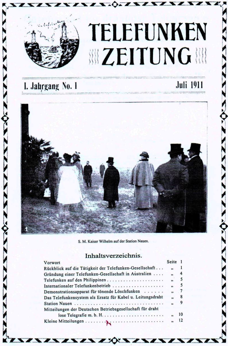 Aber dann wurde es schon geheimnisvoll: es gab auch „vertrauliche Beilagen, die ausschließlich befreundeten Gesellschaften [was ist denn das?], Vertretungen und auswärtigen Angestellten zugänglich gemacht wurden.“ Natürlich (1911) wurde auch Kaiser Wilhelm im Bild (von hinten!) dargestellt und die Großsendestation Nauen erwähnt. Ganz wichtig war oft die Beschreibung des Fortschritts, zum Beispiel mit Schiffen zu kommunizieren, nicht mit WhatsApp, sondern mit dem Morse-Code.